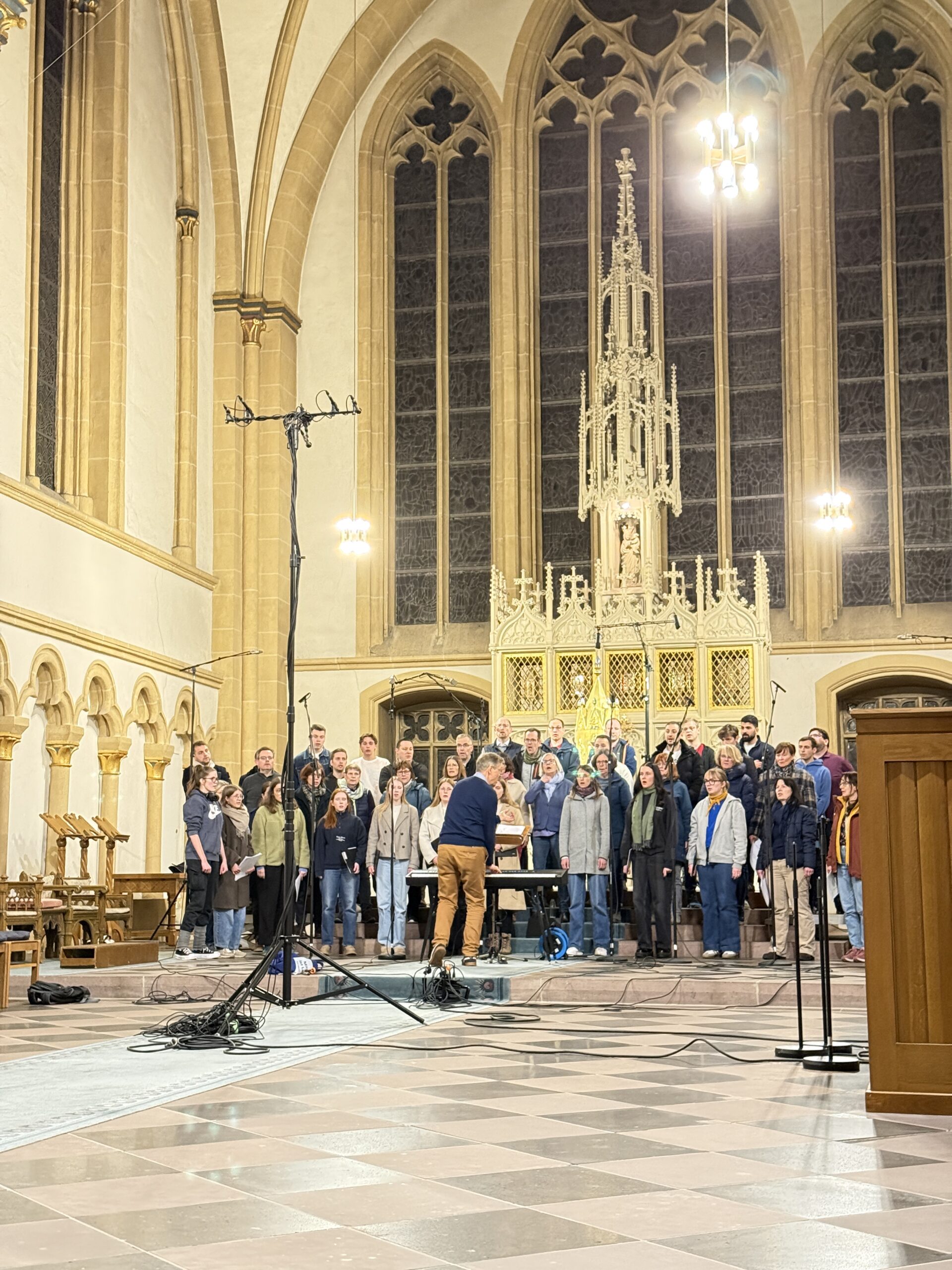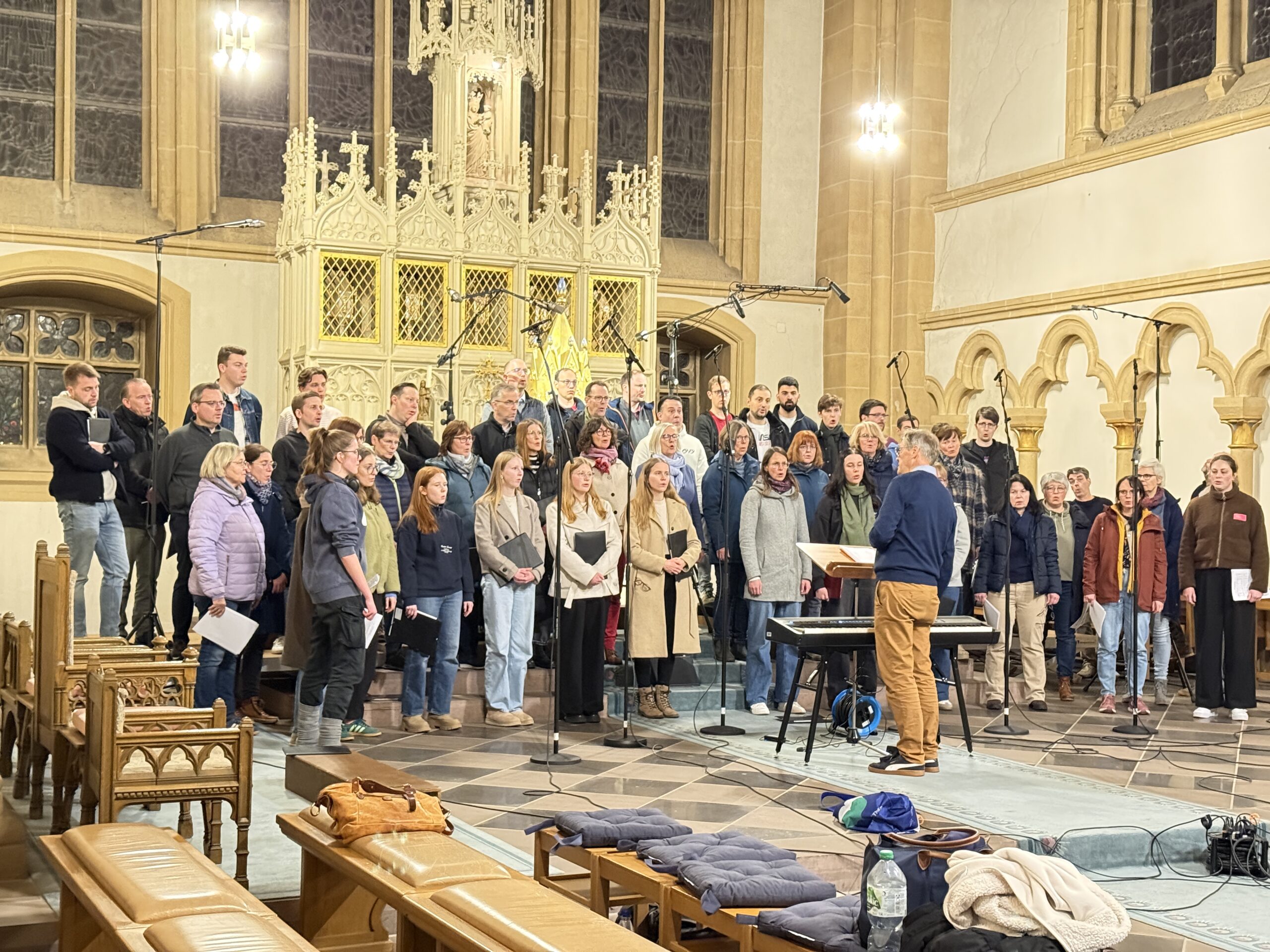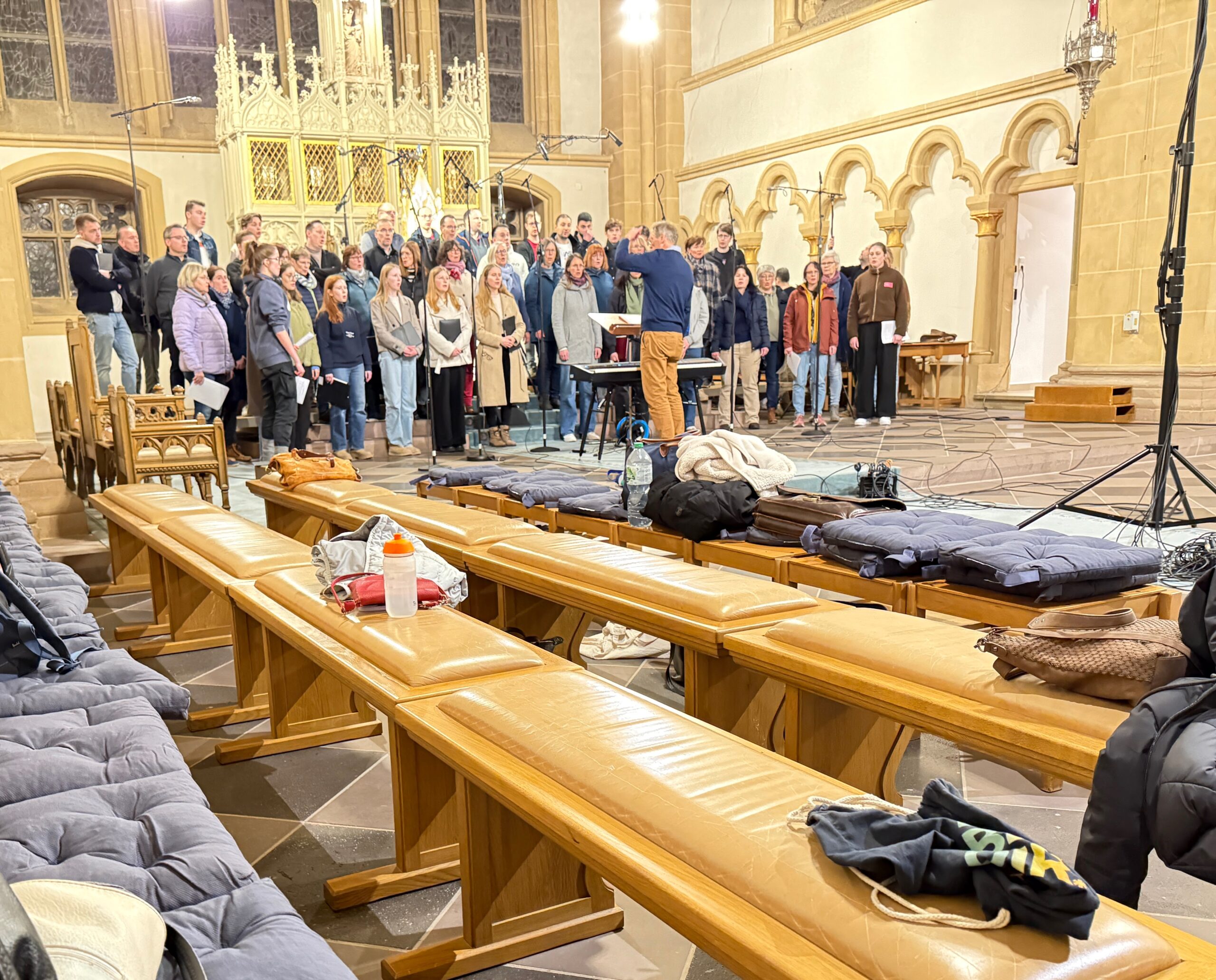 Zusammen mit der Mädchenkantorei am Hohen Dom, der Domkantorei und dem Domchor erarbeitete die Paderborner Dommusik in der vergangenen Woche reichlich Material für eine neue Weihnacht-CD. Domkapellmeister Thomas Berning und Domkantor Patrick Cellnik leiteten die Aufnahmesession, technisch begleitet vom Toningenieur Christoph Schulz von der MUSICOM-Musikproduktion.
