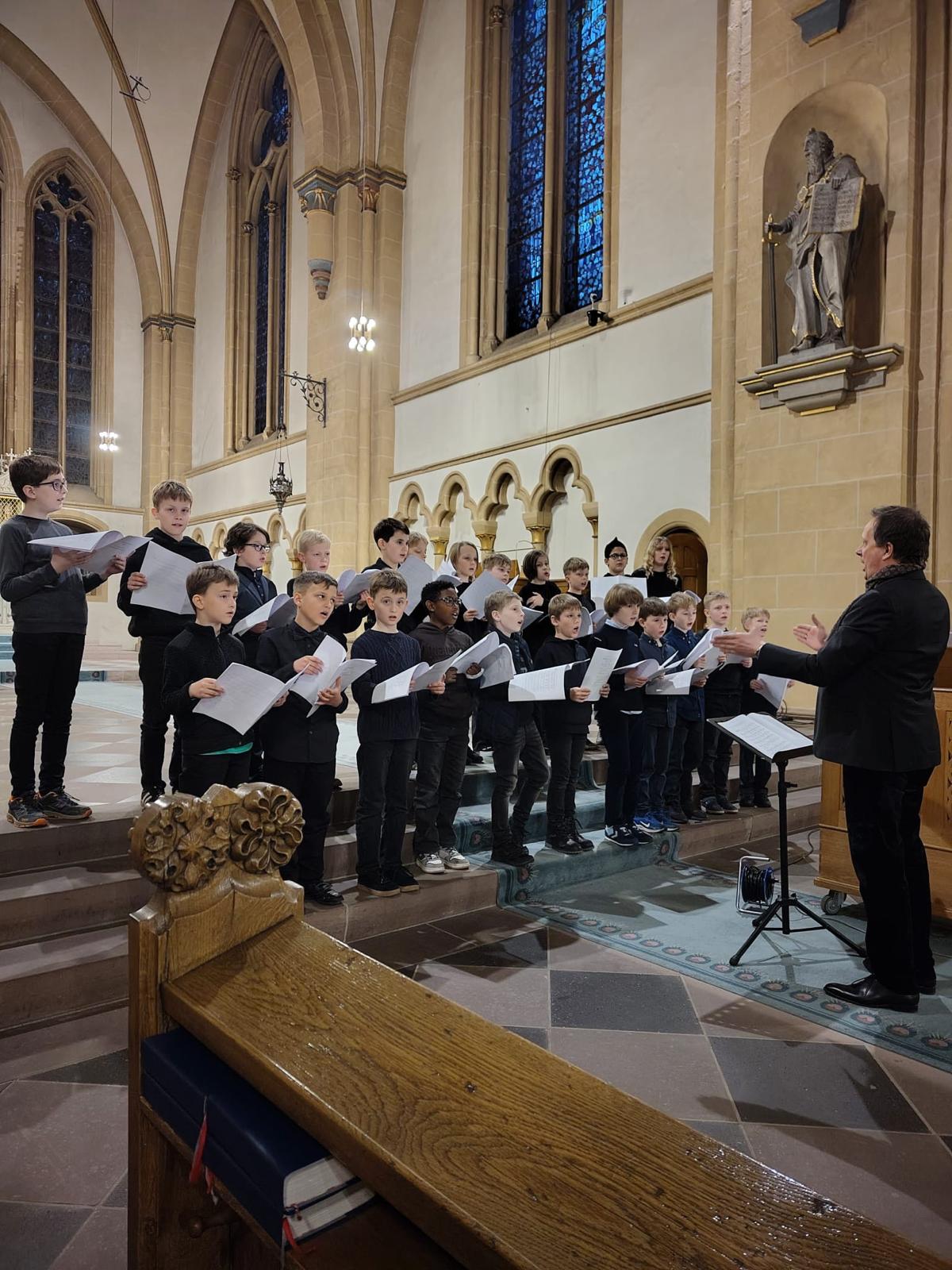 22 Jungen des Vorchores haben am vergangenen Samstag die Vorabendmesse vollständig musikalisch gestaltet. Bereits zu Beginn der Adventszeit hatten sie mit Domvikar Christian Städter Spezialwissen zum Kirchenjahr erworben; zum fünften Fastensonntag nun haben die Jungen mit ihrem Leiter, Markus Gotthardt, die große Zahl von neun Liedern und Gesängen einstudiert, mit denen sie nun einen wirklich musikalischen Gottesdienst gestalten konnten. Nach Ostern folgt der nächste Schritt: Die begeisterten Jungen werden dann in den Aufbauchor des Paderborner Domchores aufrücken!